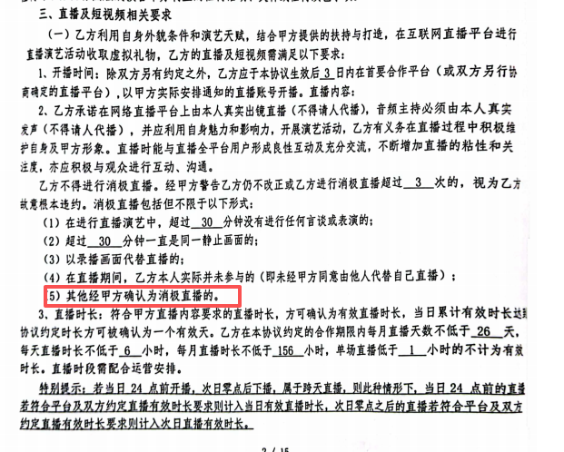 △ 小羽提供,同期主播签订合同内容,若违约需赔偿甲方公司20万
