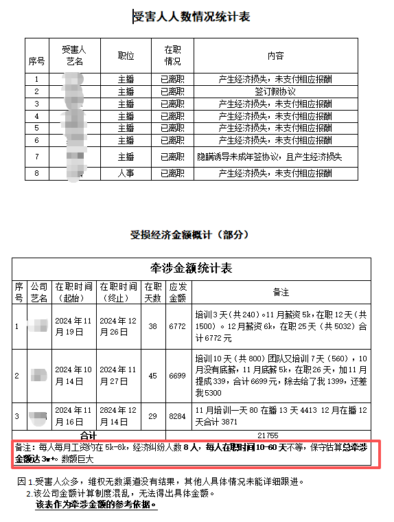她透露除了自己曾带薪上班一个月,舞台服装等各项费用都自费,最终作息颠倒一个月只赚到26块钱,并指出在领工资时与公司之间的对峙,被言语威胁“不签协议就拿不到钱”。