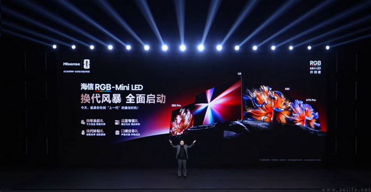 2026年1月20日,海信在国内召开以“RGB Mini LED换代风暴”为主题的新品发布会,正式推出2026款的“影游旗舰”RGB-Mini LED电视E8S,公开向以QD-Mini LED、SQD-Mini LED为代表的“旧世代”宣战。
