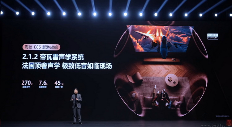 在电视自带的音频子系统方面,海信E8S也自带帝瓦雷调音的4.2.2声学系统,其具备270W的超强总功率以及7.6L巨型音腔。要知道,目前行业里不少品牌的“旗舰电视”音箱都还停留在2.1.2声道、100W出头的水平,相比之下E8S不只是实现了RGB-Mini LED显示技术的“降维打击”,在音频的“堆料”上也让竞争对手们望尘莫及。