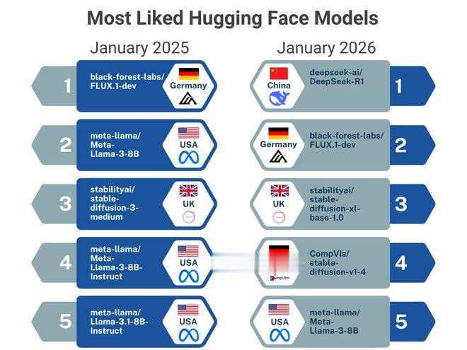 恰逢DeepSeekR1发布一周年,海外开源社区HuggingFace也发布了博客《“DeepSeek时刻”一周年》,回顾了中国AI力量在过去一年如何重塑全球开源生态。