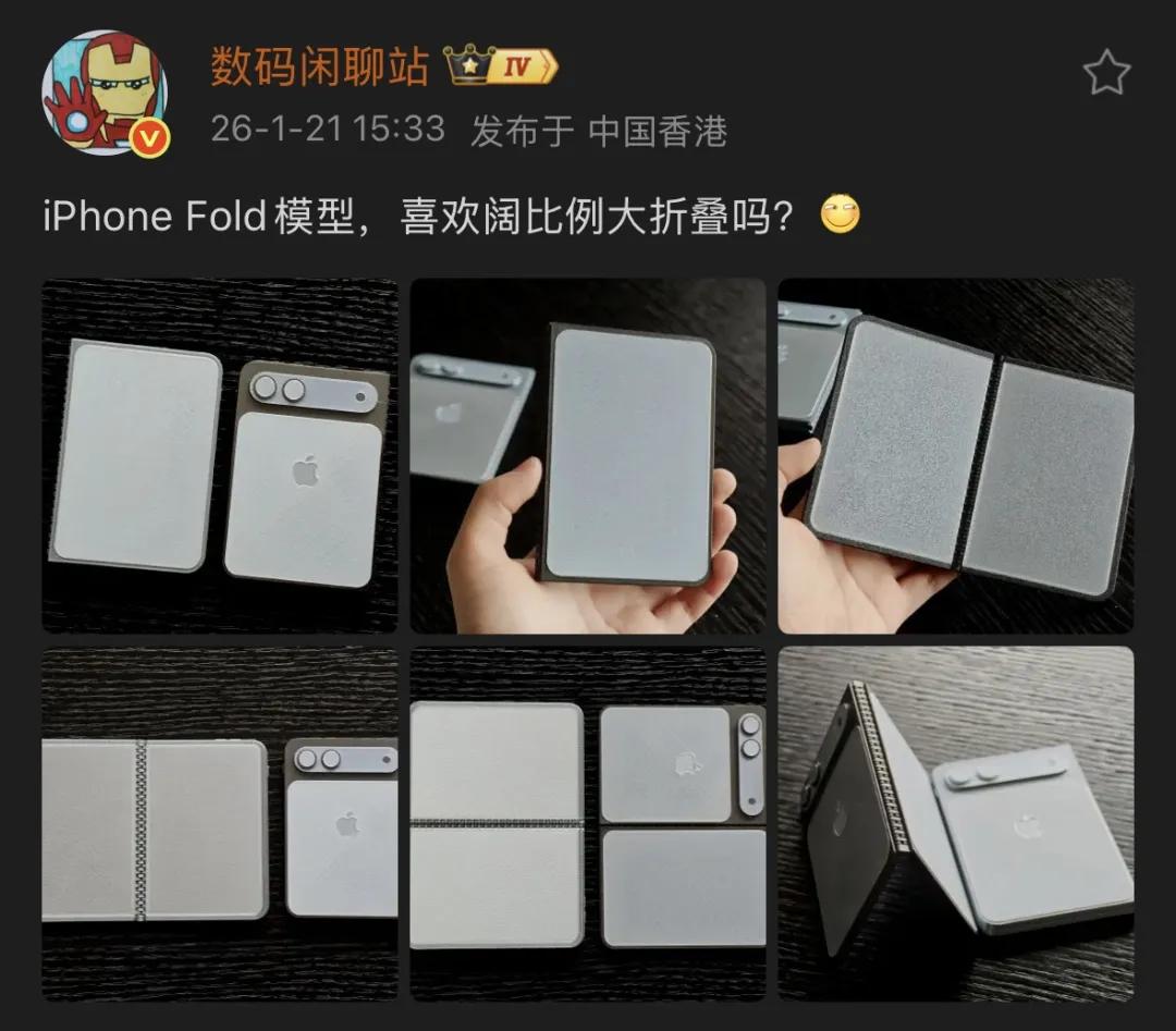 近日,博主@数码闲聊站晒出了3D打印的折叠屏iPhone模型,展示了该机的上手效果。
