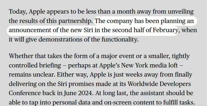 网传新Siri会在2026年春季随着iOS 26.4系统更新一起推送给用户。预计等到6月的WWDC开发者大会,苹果还会在更新的iOS 27、macOS 27这些系统里,把它做得更完善、更深度地整合进去。
