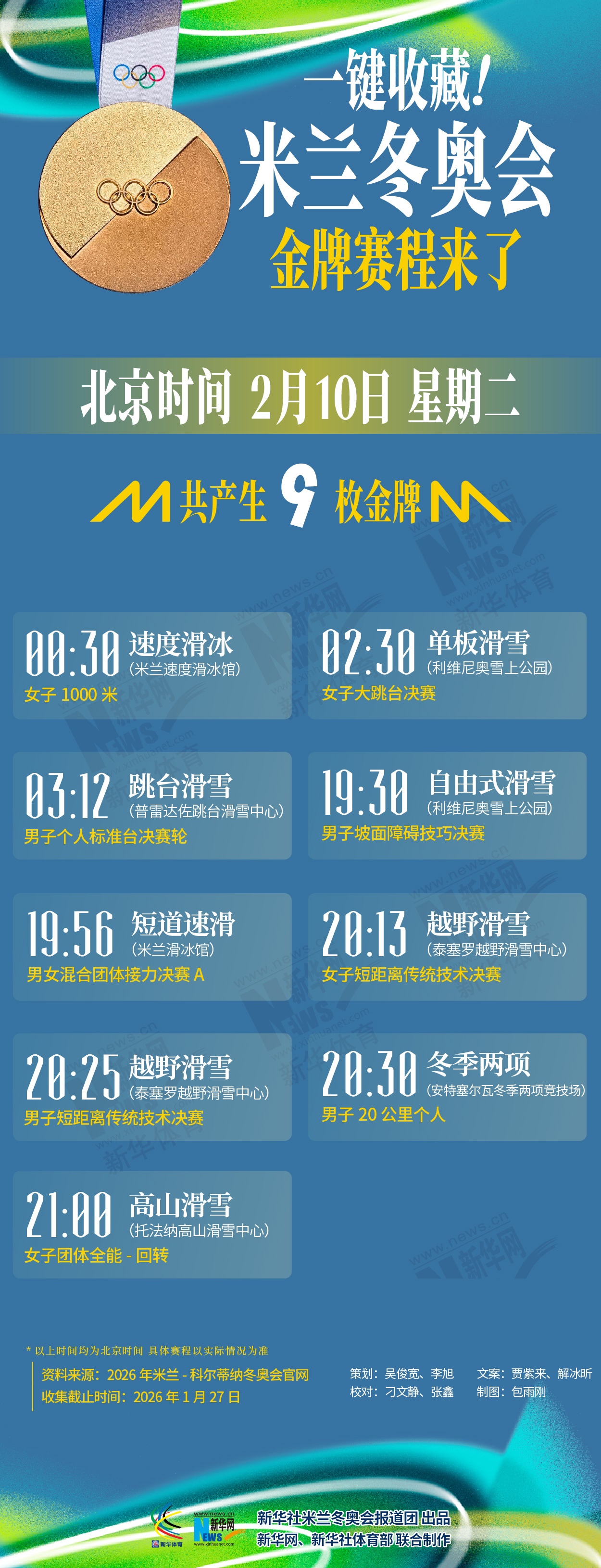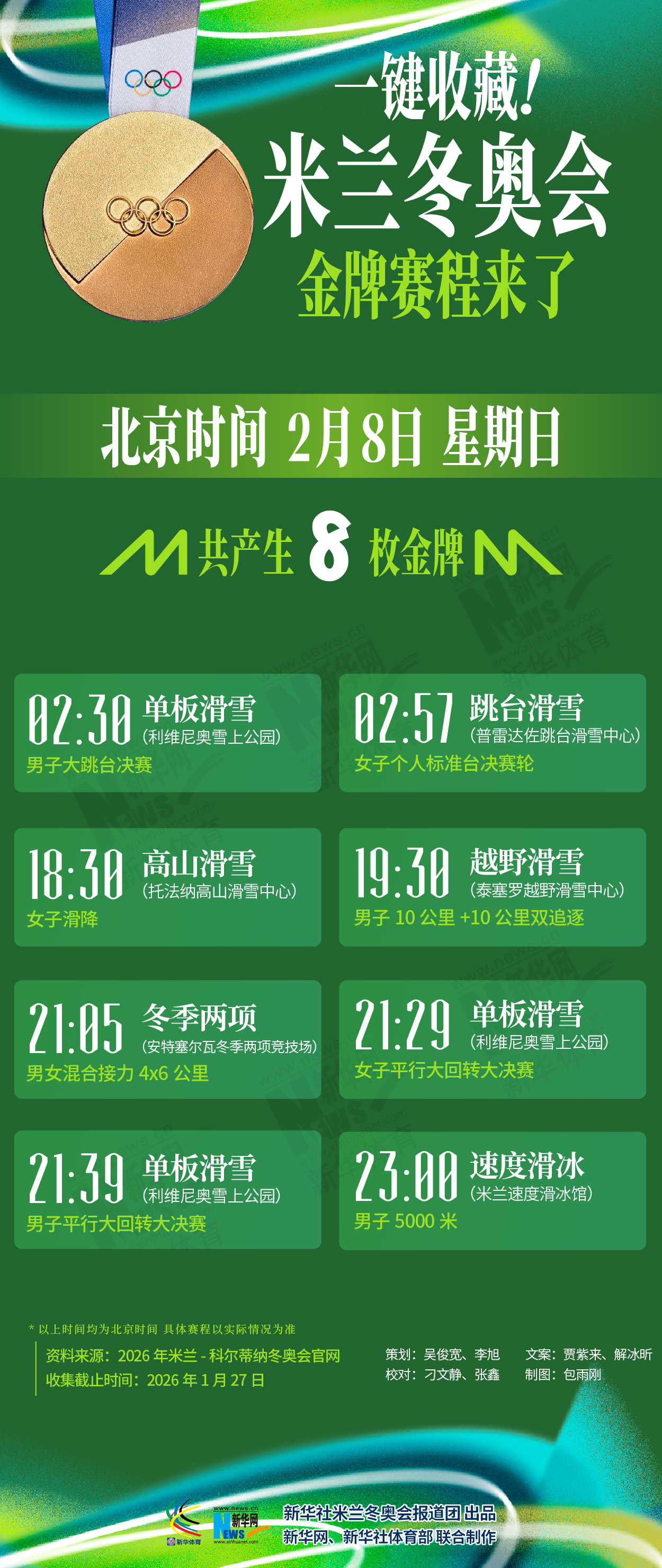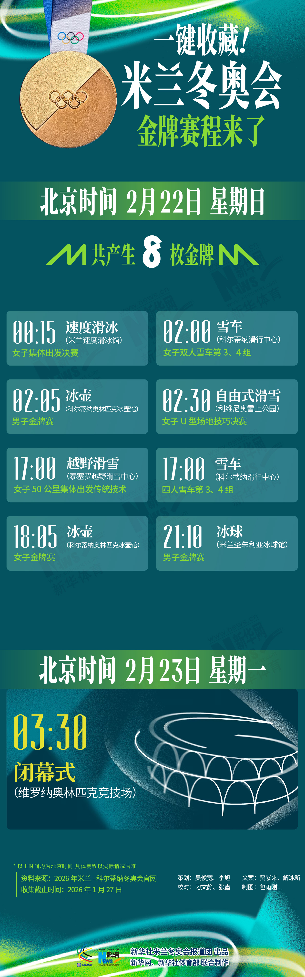 一键收藏!米兰冬奥会金牌赛程来了 作者: • 更新时间:2026-01-31 19:00 • 本文内容由互联网用户自发贡献,该文观点仅代表作者本人。如发现本站有涉嫌抄袭侵权/违法违规的内容,请发送邮件至 203304862@qq.com 本文链接:https://www.jinnalai.com/jiaodian/805974.html