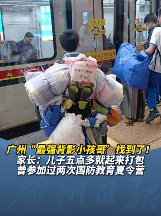 照片中,一个穿着中学校服,身材瘦小的男生手里推着箱子,背着大包小包等地铁。“打包神技”引得网友尤其是家长们齐声称赞:“这么多东西用绳子打包背着,我一个成年人都做不到。”