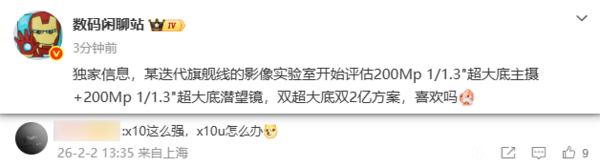 [CNMO科技消息]2月2日,数码博主“数码闲聊站”爆料称,某迭代旗舰线的影像实验室开始评估2亿像素、1/1.3英寸超大底主摄和2亿像素、1/1.3英寸超大底潜望长焦的双大底2亿像素方案。网友猜测,这款新机为OPPOFindX10系列。
