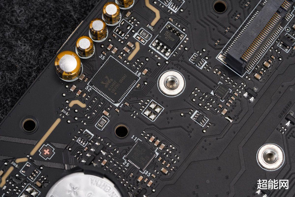 音频方面,主板采用了Realtek ALC4082音频解决方案,可提供7.1声道,配合音频线路独立区域设计和高质量音效电容,让它可实现32-bit/384kHz的采样率,并且实现120dB的信噪比和89dB的总谐波失真。音频输出电路PCB设计中直接分离左、右声道的线路设计,确保双通道皆能保有同样且纯净的音质。