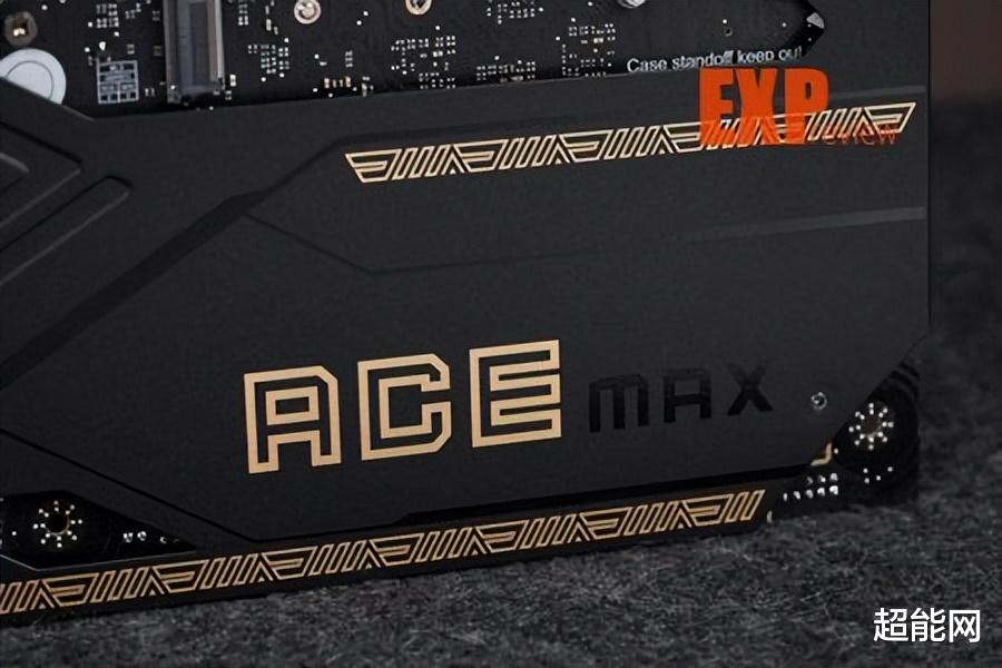 X870E ACE MAX战神在不通电的时候是看不到主板上的灯在哪的,因为都隐藏在单面镜下面,亮机后,你就能看到I/O装甲上巨大的灯板和上面的龙图腾, 以及M.2散热装甲上浮现的ACE字样。