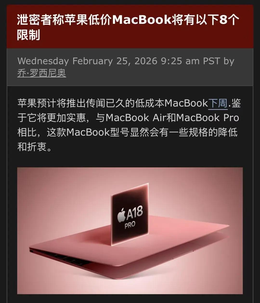 但据DigiTimes最新报道,受内存价格上涨影响,这款MacBook的整机成本也将随之上升,最终定价可能会高于预期。