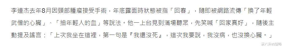 而前一段时间,李连杰的身体突然间变好了,还能蹦蹦跳跳了,然后谣言就出来了。