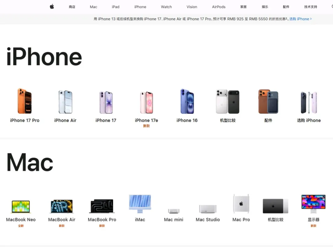 此次苹果共发布了7款新品,包括:迭代更新的iPhone 17e、M4 iPad Air、M5 MacBook Air、M5系列MacBook Pro、Studio Display、Studio Display XDR以及全新机型MacBook Neo。