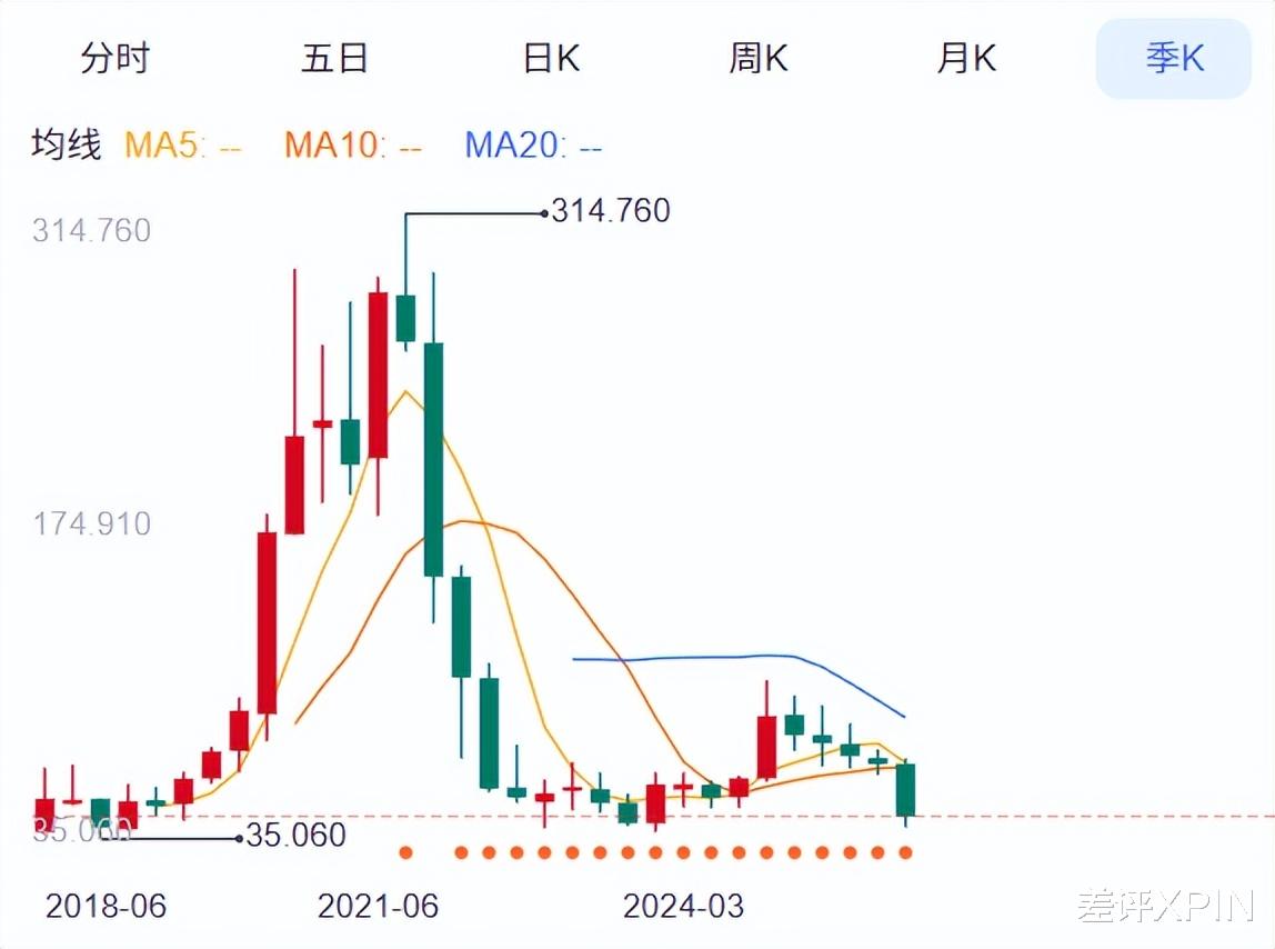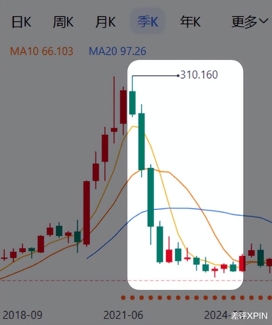 不过,有点尴尬的是,你回归就回归嘛,怎么一口气从巅峰跌了 80% ?