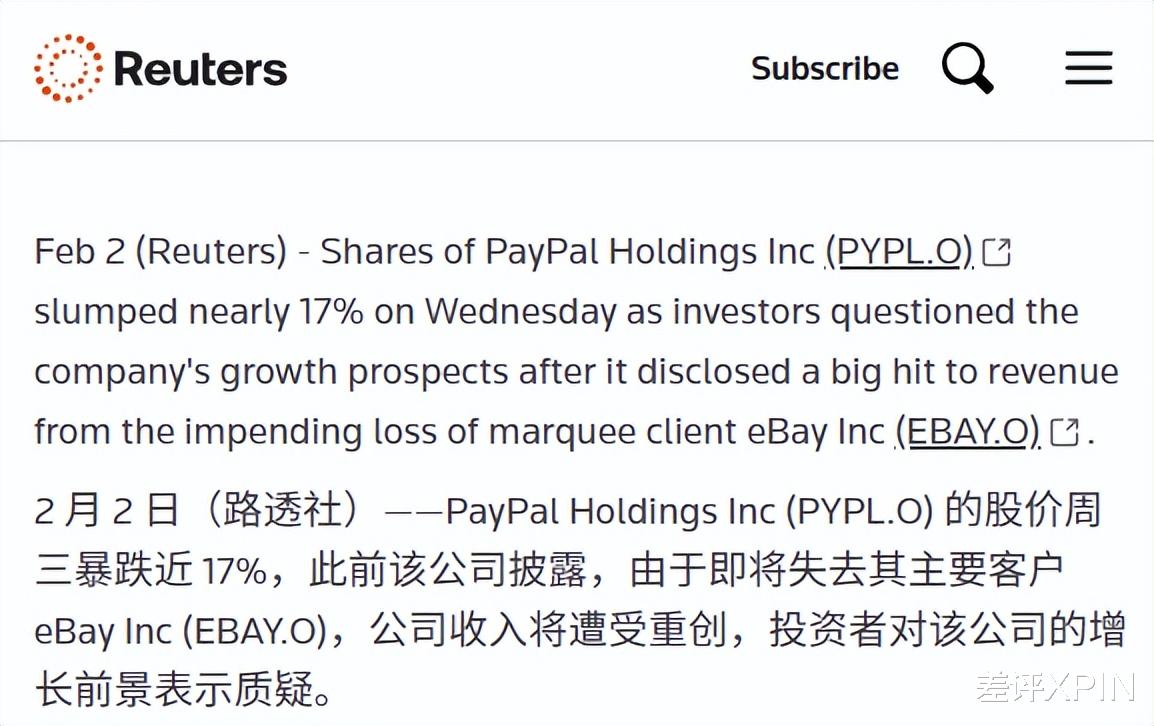 老东家 eBay 的转身离开应该是给 PayPal 最疼的一刀了。。。