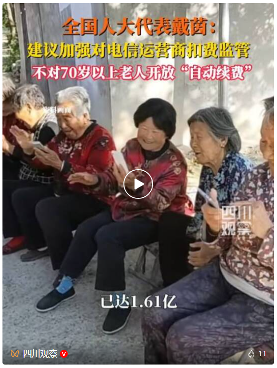 据《中国互联网络发展状况统计报告》,截至2025年6月,我国60岁及以上网民规模已达1.61亿。由于老年人普遍网络经验不足、风险防范意识不强、视觉脑力等生理功能退化,各种各样的网络消费陷阱更容易盯上老年群体。“在不少情况下,侵害行为是通过电信运营商扣费来实现的。”戴茵说。