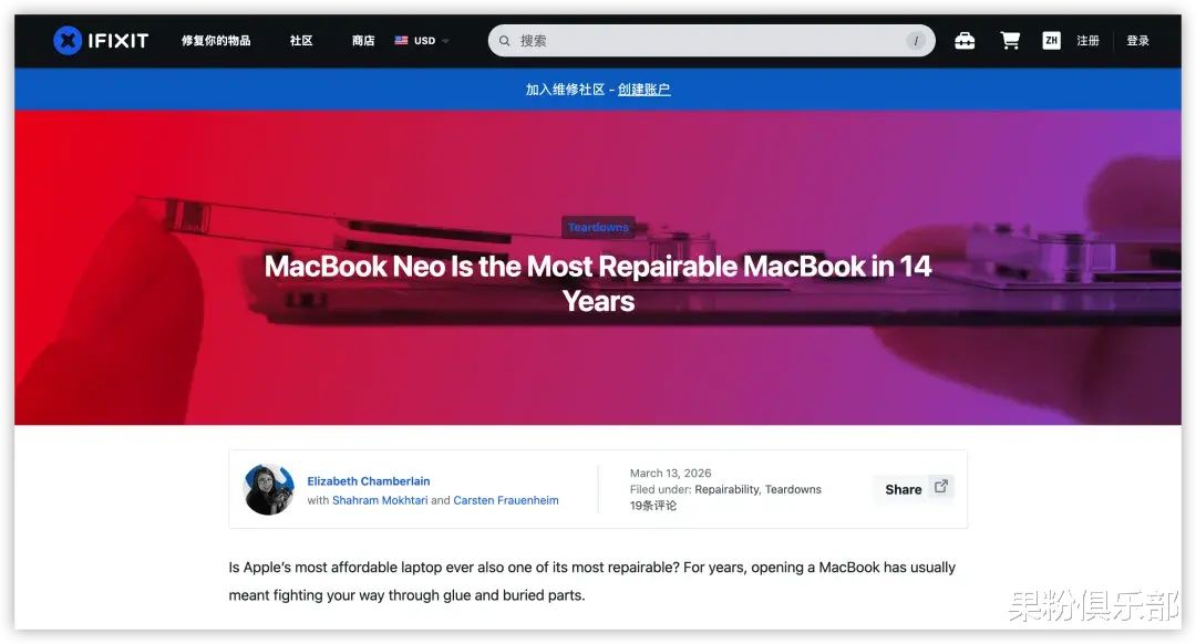 按照iFixit 的说法,MacBook Neo 的「可维修性」相当值得称赞。他们认为,这是苹果自 2012 年以来,最令人满意的 MacBook 产品。