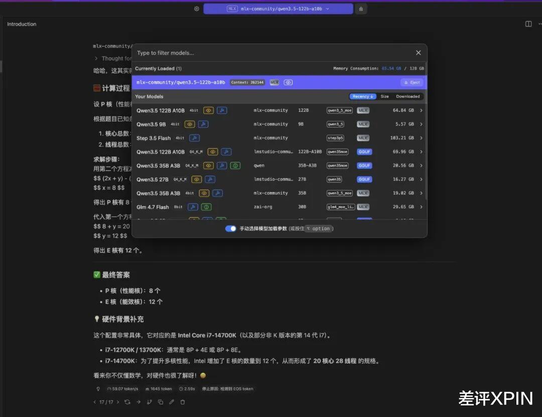 在 LM Studio 下进行大模型测试,太小的模型对它来说实在是小 case。