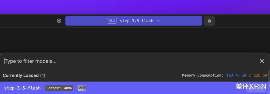 这台机器的极限则是 step3.5-flash,一个 196b 的模型!光是加载这个模型,就已经占用 100G 内存。