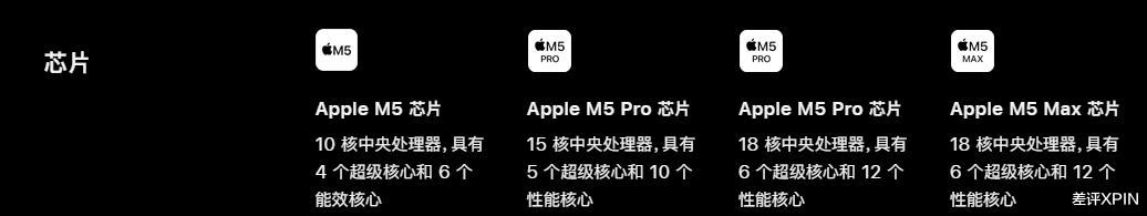 根据官网的信息,托尼推断这次的 M5 Pro 和 Max 处理器,至少分成了 CPU 和 GPU 两个部分进行组合。