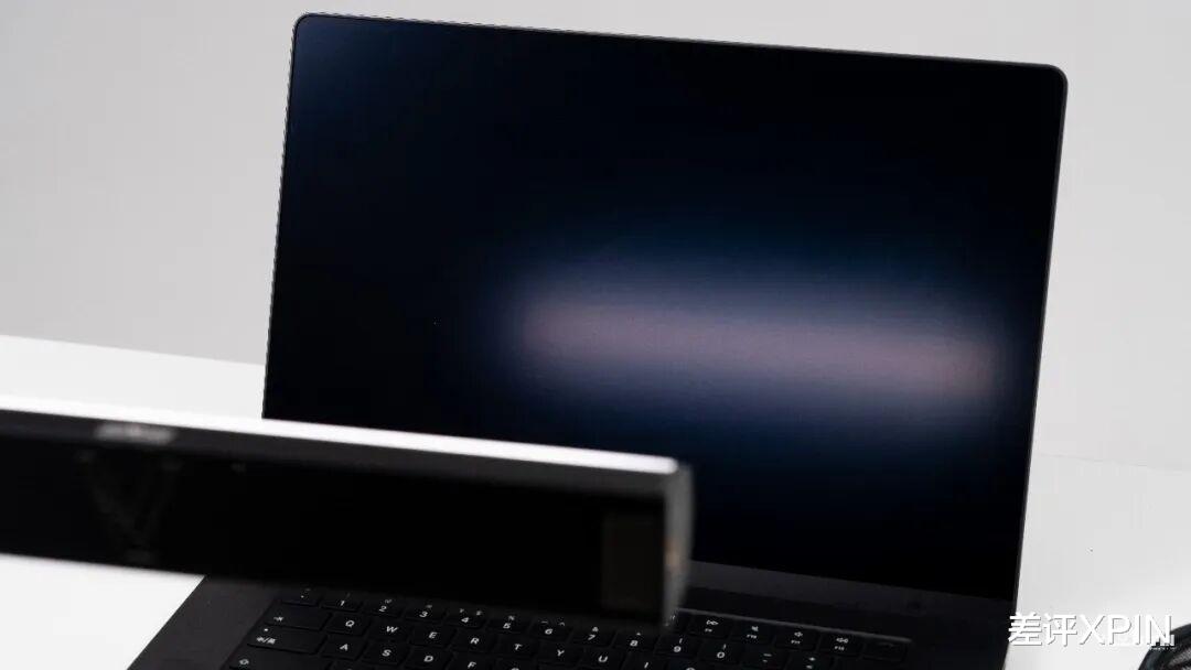 屏幕同样延续了上代的 XDR 屏幕,素质也是独一份的,加上纳米纹理涂层,使用时很难感受到反光。把机器熄灭,你们就说这抗眩光能力怎么样吧。