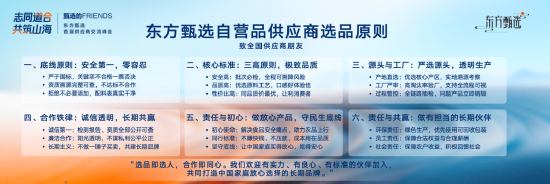 第五,要做放心的产品,要守住民生的底线。东方甄选主要解决的一个痛点是要解决安全问题,食品安全、用品安全,这是最大的痛点,让老百姓降低选择成本。放五样东西在你面前,你不知道哪样东西最好,你不知道哪样东西最安全,这是最痛苦的事情,所以尽量减少选择成本。