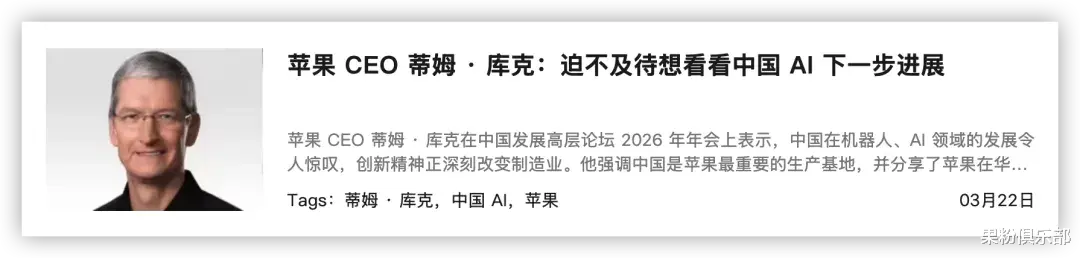 在近期接受采访时,苹果 CEO 库克就曾表示,他迫不及待想看看中国 AI 下一步进展。