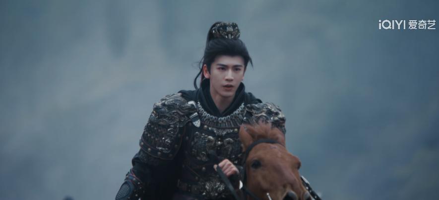 所以,对于营造浪漫爱叙事的古偶来说,少年将军主打的是青涩和纯情,要飘逸好看,追求的是仙气的美感和破碎感。他们会更加注重仪态和氛围感,突出帅和浪漫。哪怕在飞沙走石的战场上策马奔腾一通乱杀后,每一根头发丝也都要在它该在的位置,嘴唇饱满红润,连眼影都没有糊一下(暂且不论为什么将军会用眼影)。