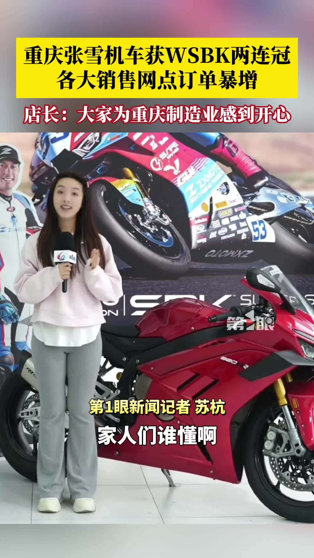 另据第1眼新闻报道,重庆张雪机车WSBK两连冠点燃全网热情,“摩托车之都”全城沸腾。3月30日,记者打探重庆各大门店,张雪机车两江新区店店长直呼订单暴增:忙不赢根本忙不赢。
