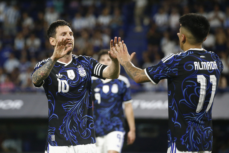 开场仅4分钟,阿根廷便闪电取得领先。梅西接长传后连续盘带过人随后横传,阿尔瓦雷斯低射破门,场上比分变为1-0。