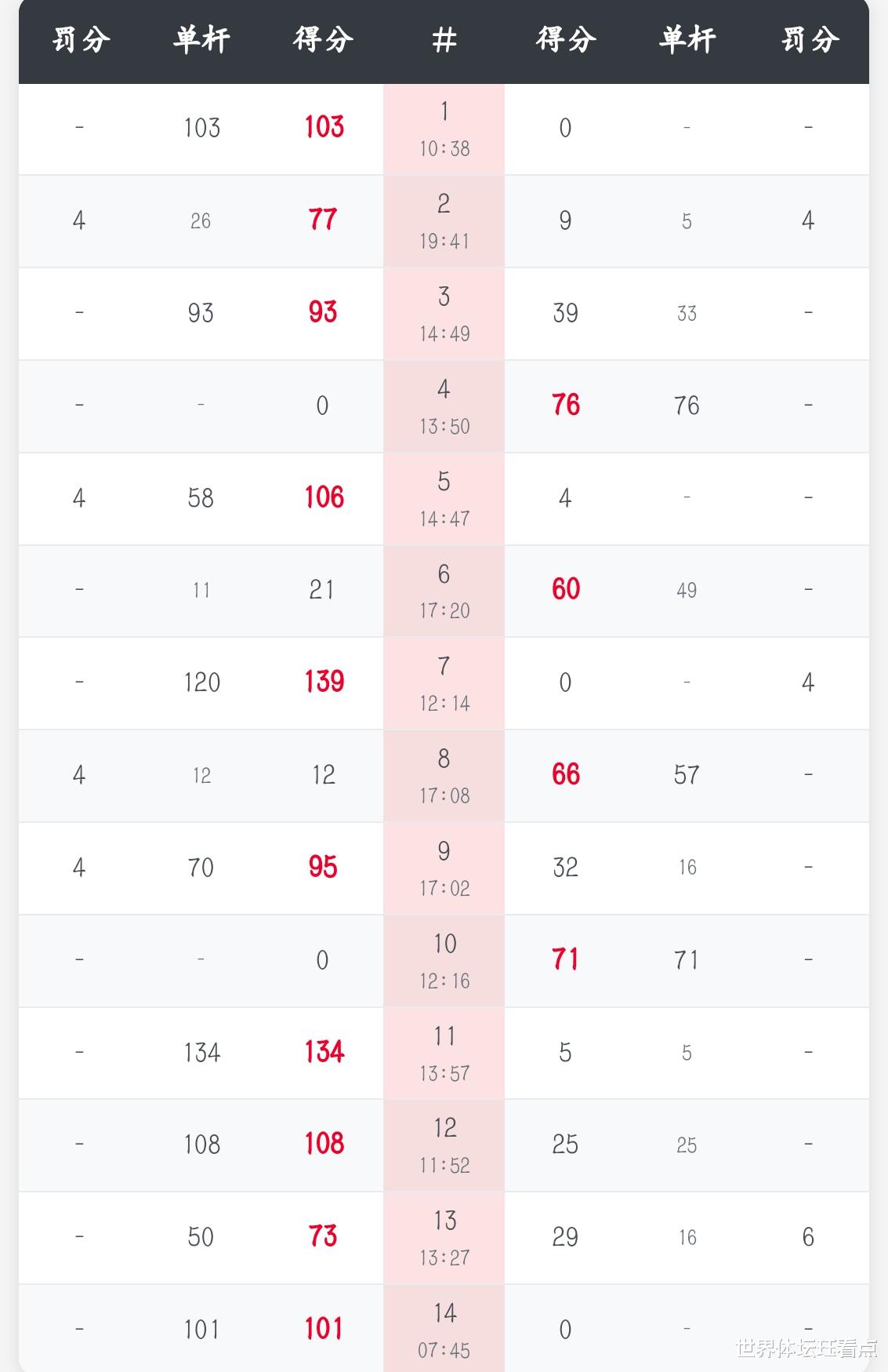 第2局,赵心童凭借出色把握机会的能力以77:9再胜一局2-0领先韦克林。第3局,韦克林率先拿到39分失误,随后赵心童单杆打出93分以93:39赢下此局从而3-0领先韦克林。