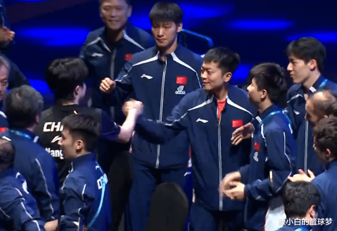 王楚钦走到国乒替补席后第一时间跟王励勤拥抱,随后跟多位国乒小将握手,陈垣宇、袁励岑、温瑞博等等,这也算是国乒的一种传承。