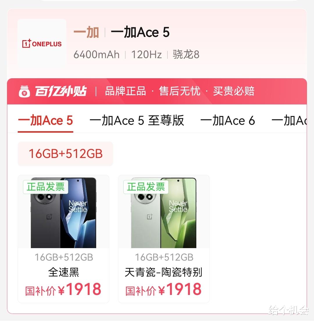 当初一加ace 5定价是2299元起,16G+512G大内存要2999元,现如今在平台内降至2000元以内,降价大概有1000元,是目前比较便宜的高性能大内存手机,入手能再战四五年。