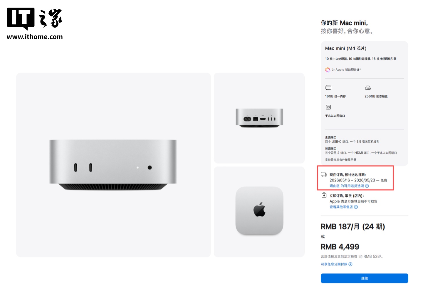 IT之家注意到,即便售价4499元、搭载M4芯片与16GB内存的基础款机型,也存在一个月的发货延迟。