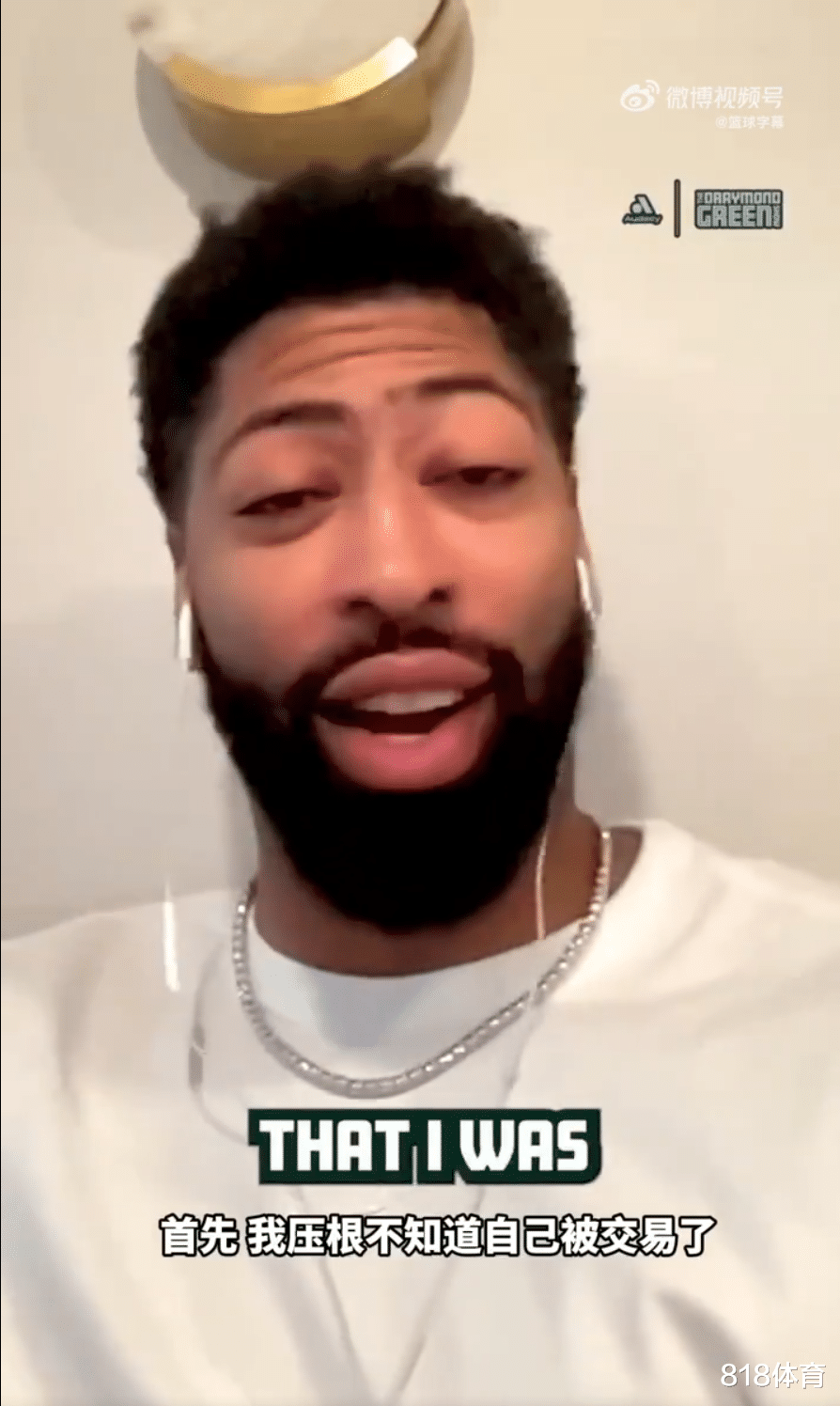 4月9日,浓眉在参加勇士球员追梦格林的节目中表示,“首先,我压根不知道自己被交易了。回到屋里,我想了一下,继续看一会儿比赛,还是上楼看电影?最终我决定上楼看电影。躺在床上,妻子在我旁边,我正在找电影看。突然看到湖人总经理佩林卡给我打电话,洛杉矶时间是晚上8:45或9点。我想,‘明天再回他吧。’然后佩林卡又发短信说,‘AD,有空给我回个电话,我和教练有事要跟你商量。’我想,可能是个交易。之前我说过我们需要一个大个子。