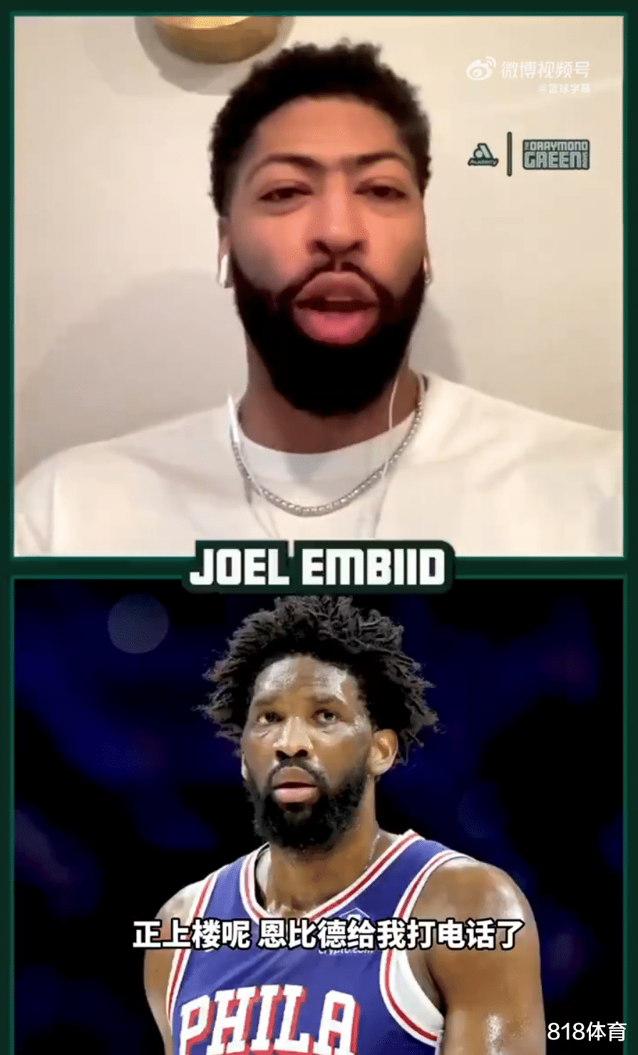 我正上楼呢,恩比德给我打电话,还有个球员给我打电话,我心想,‘等等,不对劲。’”