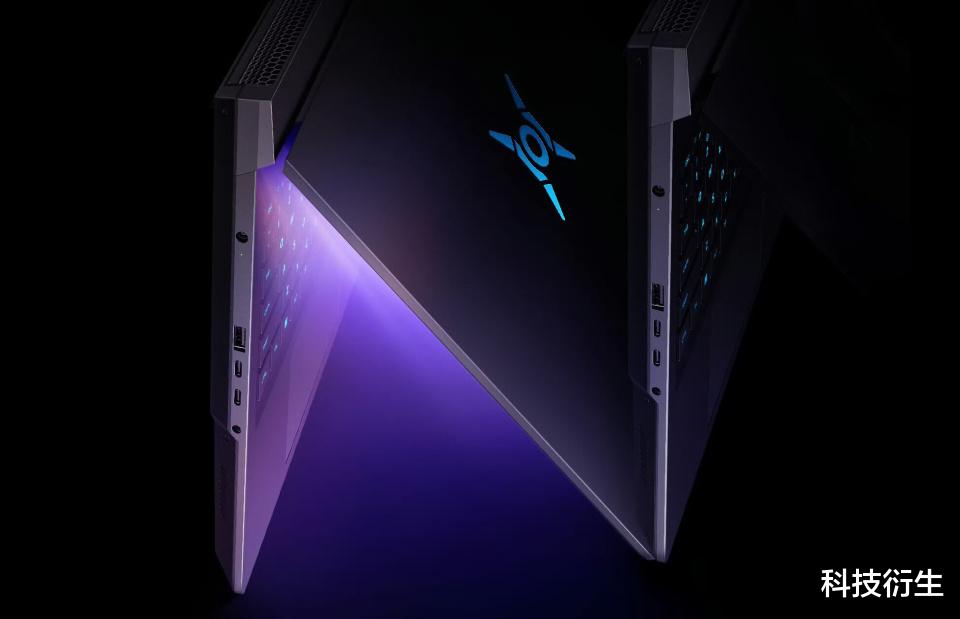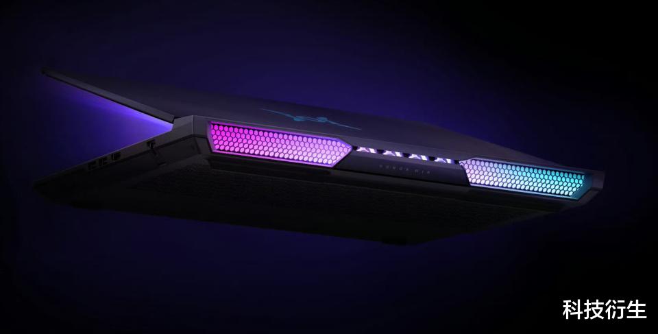 机身轮廓硬朗,边角进行圆润处理,提升整体质感。屏幕自然是全面屏设计,摄像头在边框上。键盘采用RGB背光设计,支持自定义光效。后方采用了两大光效散热网设计,性能与美观兼顾。