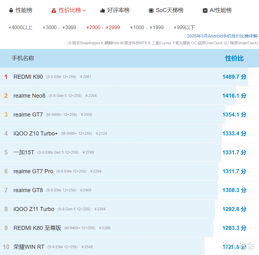 同样是骁龙8至尊版处理器的手机,而且还拥有2.5倍长焦镜头,综合性挺不错的,在友商的衬托下成为了同档性价比第一,安兔兔最新2000元档手机性价比榜单中红米k90就位列榜首。