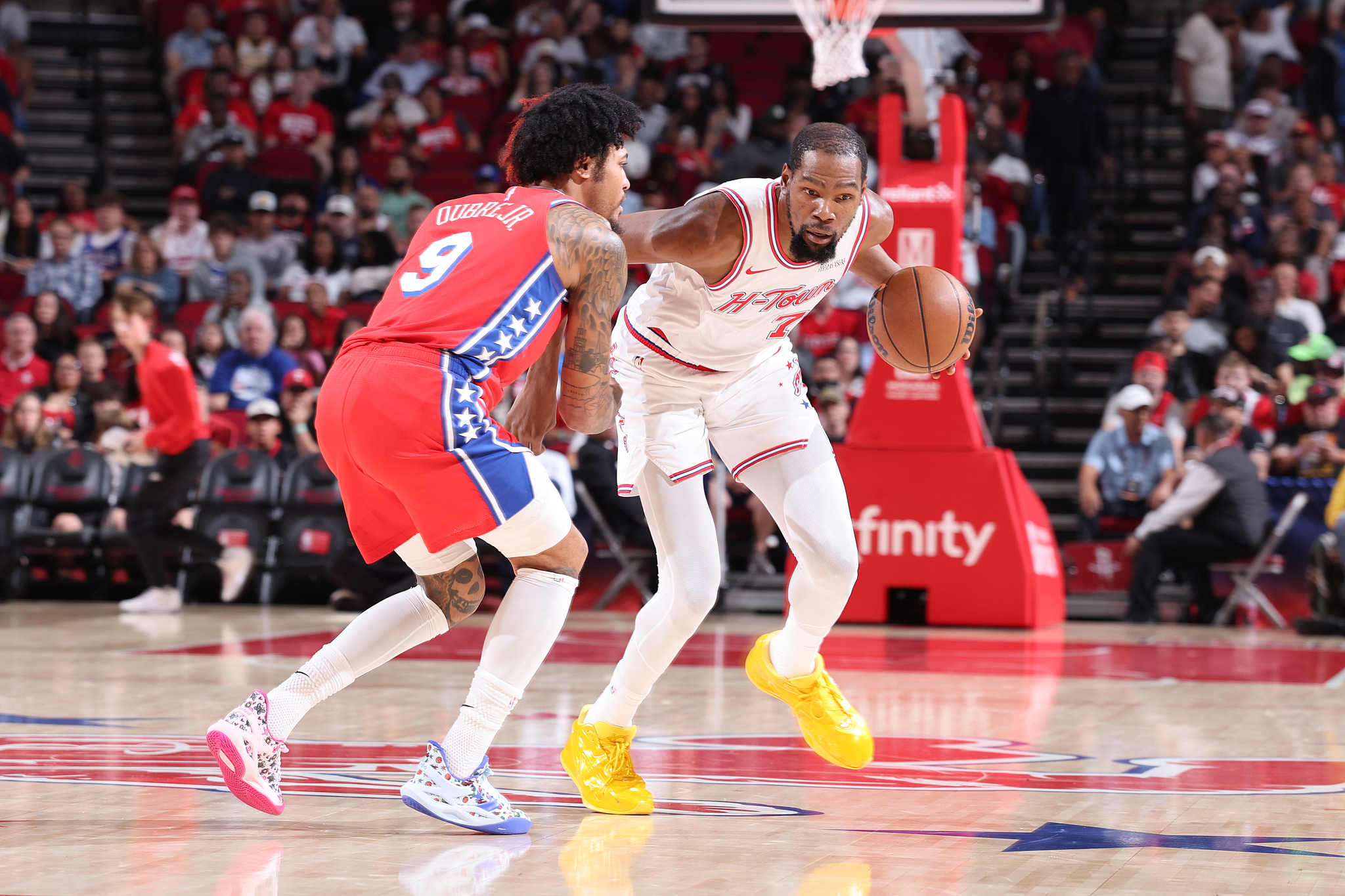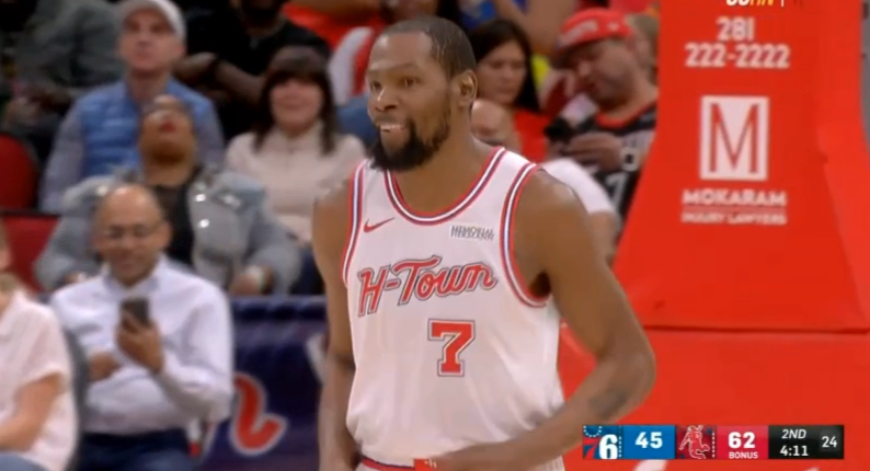火箭坐镇主场迎战76人,第一节火箭全队多点开花,35-26早早取得领先,伊森替补3中3贡献9分;期间杜兰特轰进招牌中投以及追身三分,首节6投2中拿到7分2篮板还送出3次助攻。