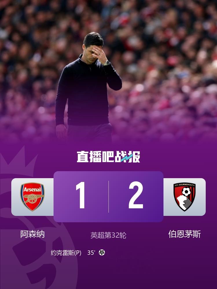 直播吧4月11日讯英超第32轮,阿森纳坐镇主场酋长球场迎战伯恩茅斯。上半场,本怀特漏人失误,克鲁皮先拔头筹,加布里埃尔造点,约克雷斯点射扳平。易边再战,约克雷斯越位进球被吹,斯科特建功。最终阿森纳1-2伯恩茅斯。积分榜方面,阿森纳四连胜终结先赛两场积70分以9分优势领跑,伯恩茅斯45分。