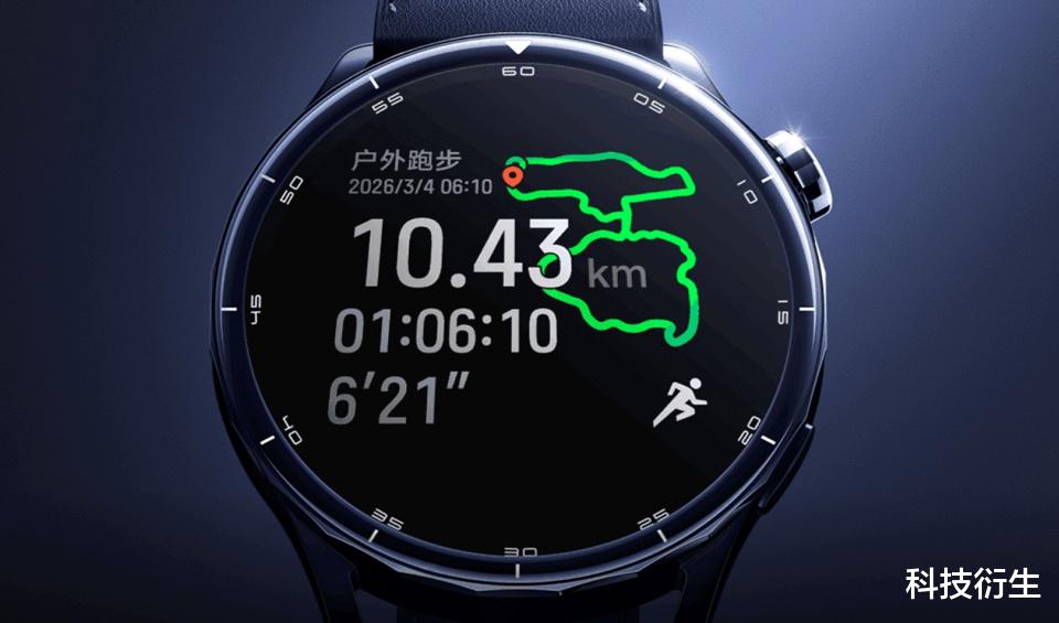 表体材质与设计,先是采用了不锈钢材质,具备抗腐蚀作用,主打耐用。表圈自然是一体式设计,尺寸为46mm,屏占比提升5.7%,边框优化到2.6mm,同比收窄40%。在屏幕边缘增加了点缀分钟刻度,而且工艺精致。