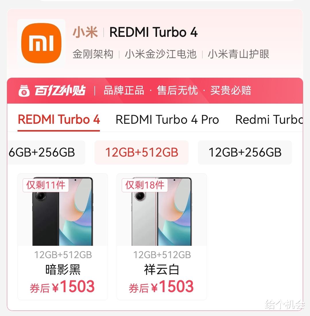 如果你追求高性能,还想买512GB的千元机型,那就可以考虑天玑8400、天玑9400e、骁龙8s Gen 4、骁龙8Gen 3等处理器,综合来看这款红米Turbo 4就值得捡漏。