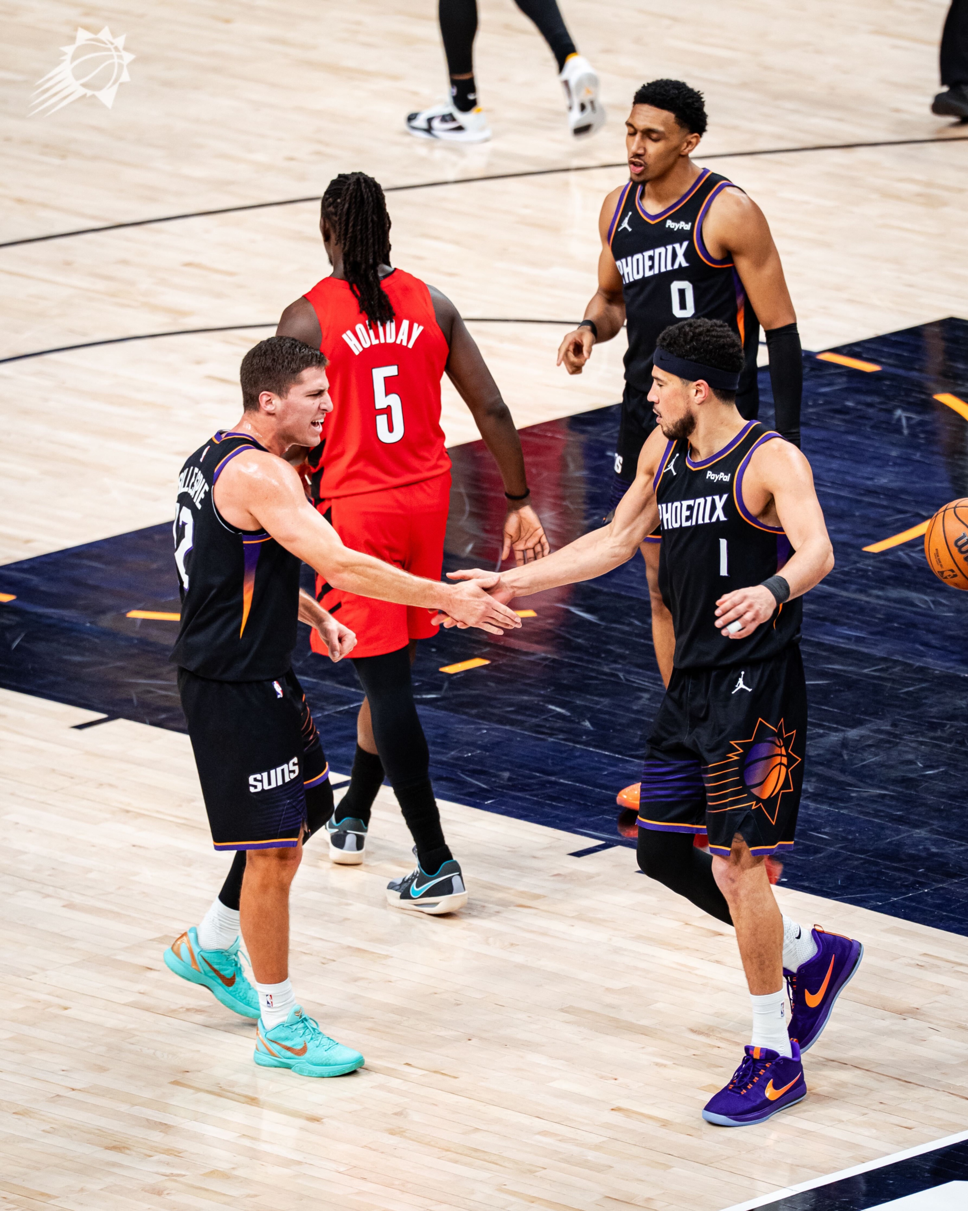 次节,开拓者一波12-2反超比分,布克连得4分,亨德森和阿夫迪亚又带队打出12-2进攻高潮,太阳落后14分后格林连得4分,古德温输送三分,随后太阳继续反扑,狄龙命中三分,古德温再中三分,格林打成不讲理3+1,单节独砍12分太疯狂,半场打完太阳62-65暂时落后3分。