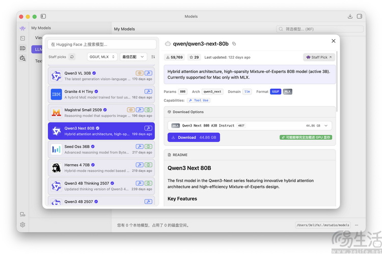 可以看到,这个80B模型“恰好”会吃掉近60GB内存