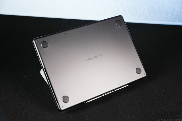 来到机身底部,苹果依然是当下极少数坚持“Laptop”原则,将进风口设计在机身两侧的厂商之一。这种设计有两个好处,一是可以安心放在大腿上使用,不用担心影响散热;二是它在日常使用中相比直接底部开孔进气的机型,更不容易积灰。