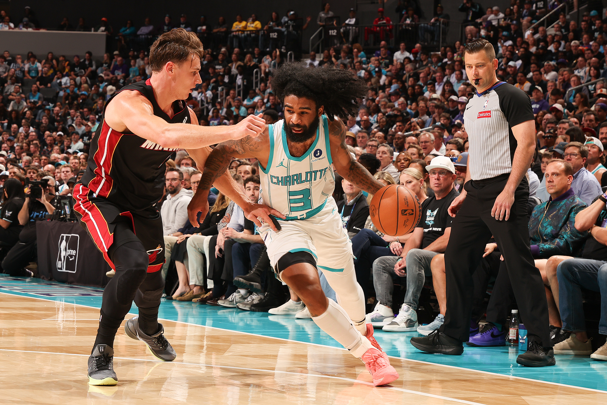第二节两队仍旧打得十分胶着,黄蜂在拉锯战中被热火反超比分,不过半场打完黄蜂52-54仅落后2分;次节克努佩尔4中2拿到6分,鲍尔单节8中3贡献8分,期间鲍尔的伤人动作引争议,他突破上篮惨遭大帽,倒地后伸手拉拽放倒阿德巴约,后者重伤倒地摔伤腰部,裁判未回放且未追加任何犯规。