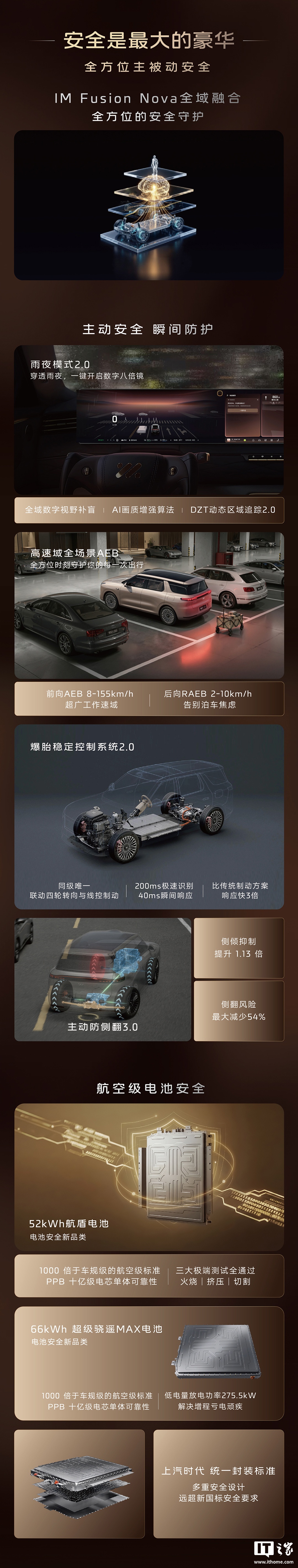 智己LS8基于800伏超快充平台打造,后驱版配备52千瓦时磷酸铁锂电池包,CLTC纯电续航里程355公里,CLTC综合续航里程1573公里;四驱版配备66千瓦时三元锂电池包,CLTC纯电续航里程430公里,CLTC综合续航里程1605公里;全系均支持最大6千瓦对外供电。