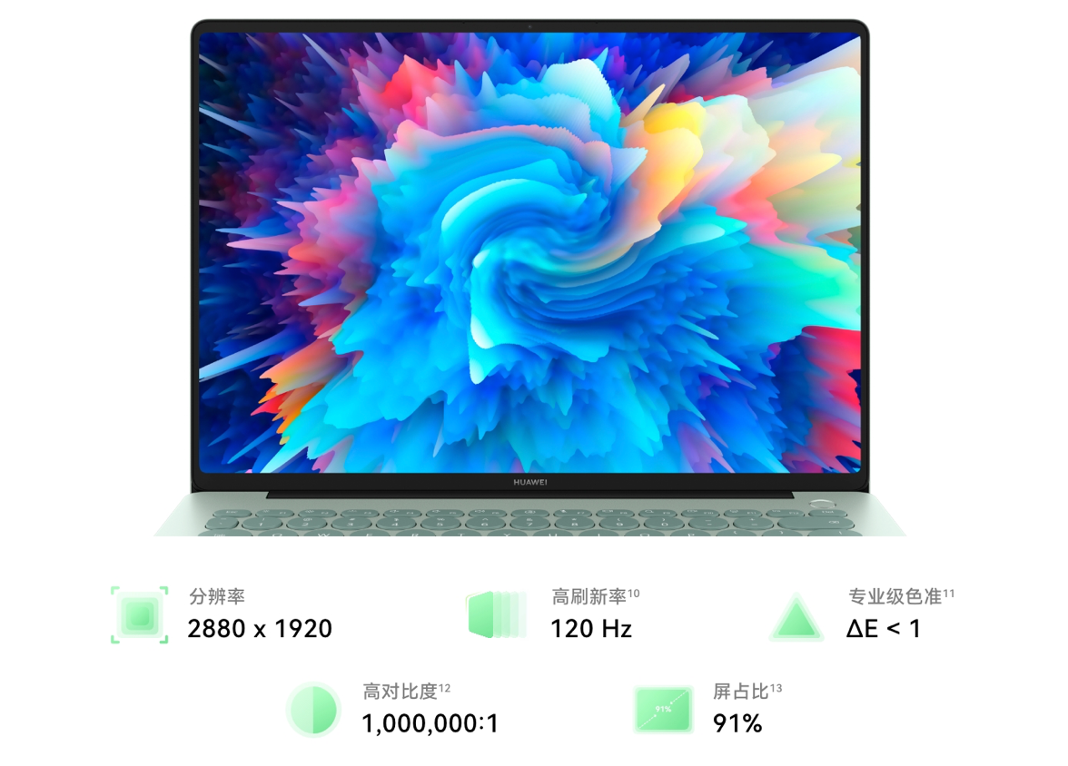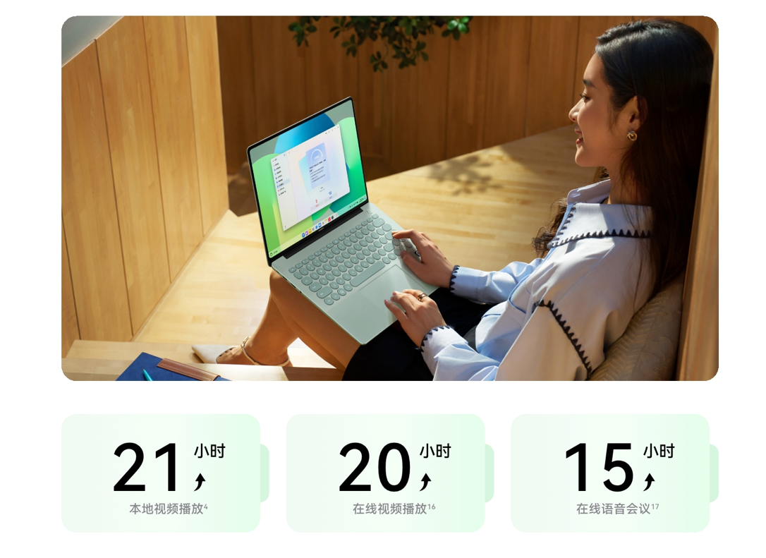 在各种使用场景中,用得久和用得稳永远是刚需。华为MateBook 14 鸿蒙版配备了70Wh大容量电池,可以支持最长21小时本地视频播放、15小时语音会议,满足全天外出和差旅需求。内置鲨鱼鳍双风扇和大直径热管组成的散热系统,在高负载下仍能保持冷静和低噪音,兼顾性能和安静。拥有如此高规格设计的同时,还能确保机身薄至14.5mm、重量仅有1.33Kg,日常通勤携带没有压力。同时,鸿蒙智徽、波点技术键盘和多彩配色也让设计更有辨识度。