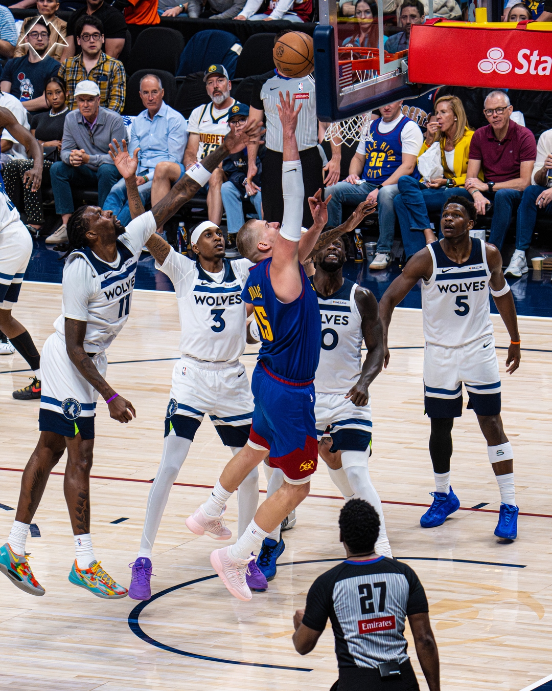 掘金和森林狼G2开打,第一节约基奇开场专注于串联全队,穆雷、布劳恩和小哈达威都是手感滚烫,在他们的火力输出下,掘金早早拉开分差并且首节39-25领先14分,约基奇首节2分3篮板5助攻,穆雷轰进3记三分独砍11分,两次迎着防守轰进不讲理3+1。