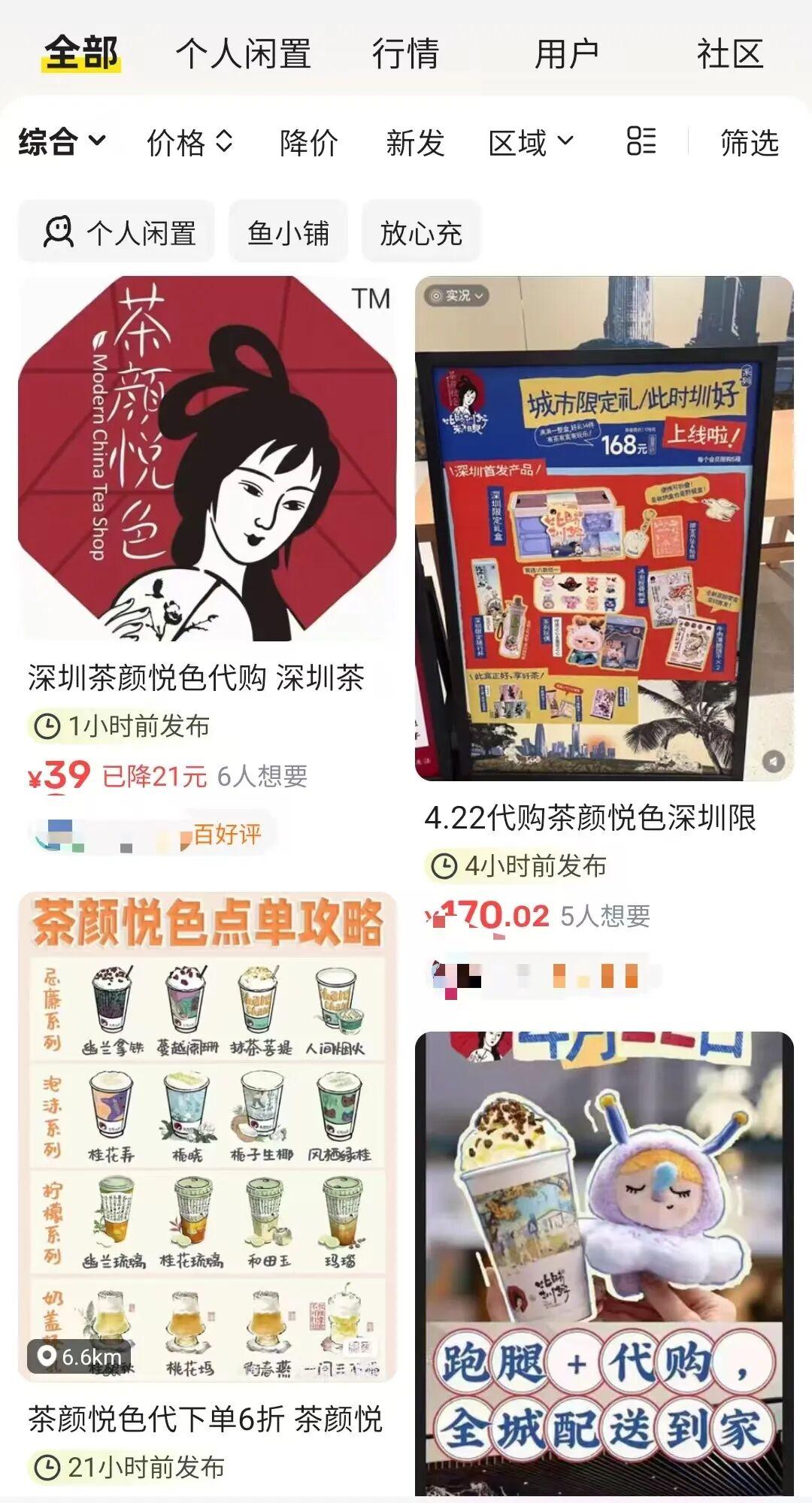 记者注意到,在网络平台上已出现大量关于“有偿代购深圳茶颜悦色”的帖子,代购内容包括饮品、周边、零食等。