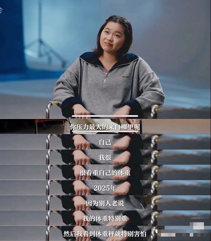 通过她的话,我们能看到,她不仅要面对身体的变化,更大的压力来自“外面的舆论”:“我有一点接受不了老是被别人说胖了,每天都有人在说我胖了,我特别伤心,到后来,我已经有心理阴影了,看到体重秤我就特别害怕。”“每天都能看到有人说我胖。但我已经要饿爆了,减肥减到我感觉我都快‘嘎’了。”