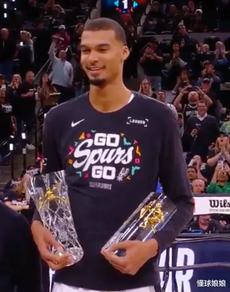 今天赛前,文班才刚刚领了自己的最佳防守球员奖杯。